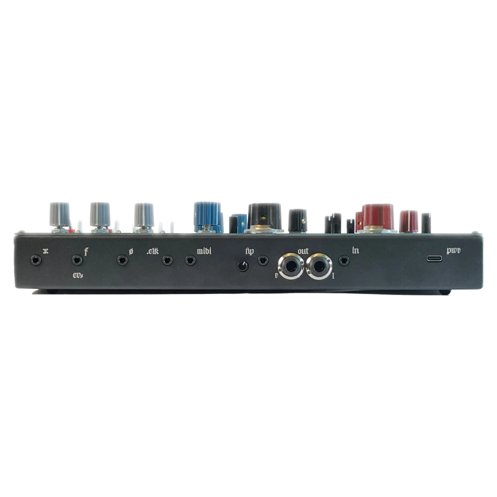 It’s a standalone instrument, but compatible with Eurorack voltage levels, with midi clk/reset and sync inputs. It has a stereo line level input for processing external sources, stereo line level out, and a headphone output.