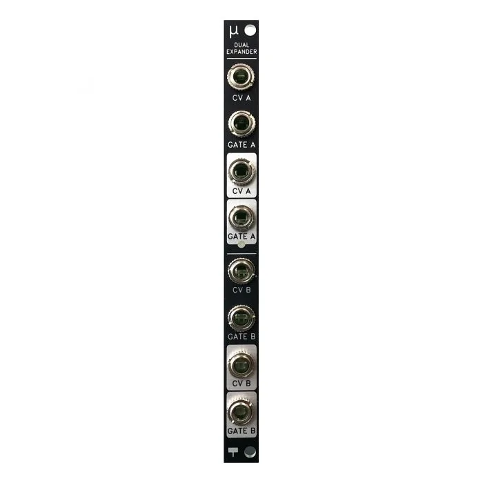This expander adds two additional channels to µTune. Each channel has a CV-in, GATE/FREQ-in, CV-out and GATE-out. Functions for each output can be assigned freely.