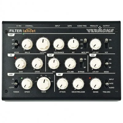 Filter Lancet cannot deny its relation to Retroverb Lancet. No wonder that because both units share the same multimode filter with low-, high- and band-pass modes as well as an overdrive circuit and a discrete built VCA.